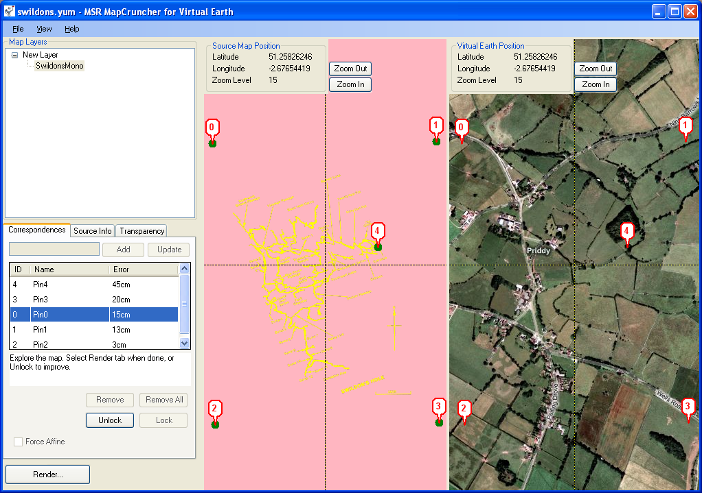 is the finished online map. Drag the slider by the Caves/Sat map type button to adjust the cave overlay opacity on the Caves/Sat hybrid map. See this page's code (which works fine for Firefox and MSIE7) for more details.